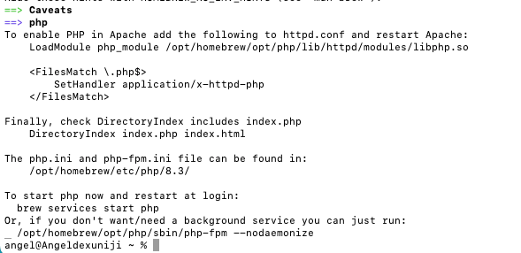 brew install php安装过程结束时,你会看到类似这样的内容: