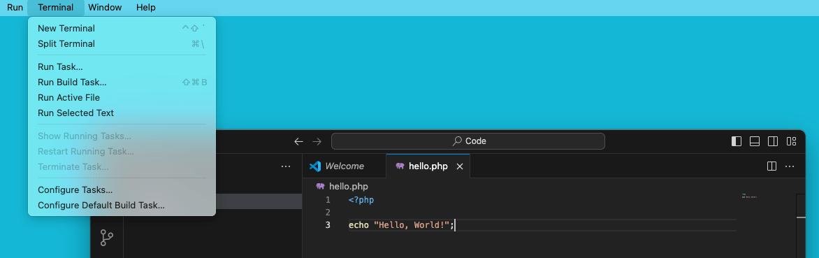 打开 Visual Studio Code。编写你的 PHP 代码,例如: